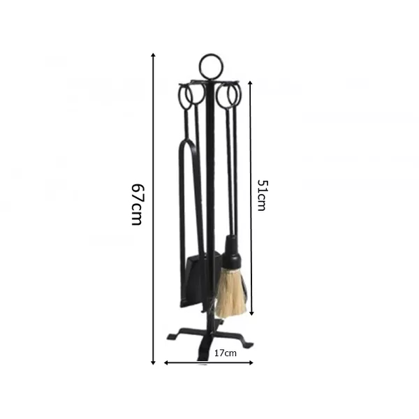 Informações gerais e uso: O kit acompanha - 01 Atiçador: Serve para atiçar a lenha/brasa que esteja apagando, 01 Pinça: Serve para pegar a lenha/brasa que tenha caído fora, 01 Vassoura: Serve para limpar a lareira no dia seguinte do uso, juntar as cinzas e 01 Pá de Limpeza: Serve para auxiliar na limpeza da lareira, retirar as cinzas.